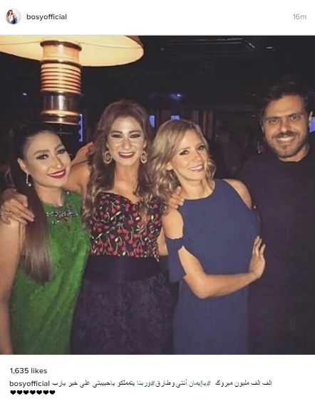 حرصت المطربة الشعبية بوسي على تهنئة الفنانين ايمان العاصي وطارق صبري بمناسبة الإعلان عن خطبتهما مؤخرا، وشاركت بوسي صورة تجمعها بهما عبر حسابها على انستجرام، وعلقت عليها قائلة :"الف الف مليون مبروك يا إيمان أنتى وطارق وربنا يتمملكو ياحبيبتى على خير يارب".