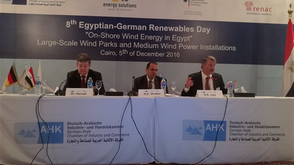 ألقى الدكتور خالد الدستاوى وكيل الوزارة لشئون مكتب وزير الكهرباء، نيابة عن الدكتور محمد شاكر وزير الكهرباء والطاقة المتجددة، كلمة صباح اليوم الإثنين أثناء فعاليات اليوم المصرى الألماني الثامن للطاقة المتجددة، الذى تنظمه الغرفة الألمانية بالتعاون مع وزارة الاقتصاد والطاقة الألمانية، بحضور يوليوس جورج لى، سفير ألمانيا بجمهورية مصر العربية ، والدكتور رينيرهيرت المدير التنفيذي للغرفة المصرية الألمانية للصناعة والتجارة ، ووفد من خمس شركات ألمانية متخصصة في مجال طاقة الرياح.