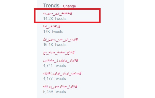 هاشتاج «#مقاطعة_أون_سبورت» يتصدر تويتر