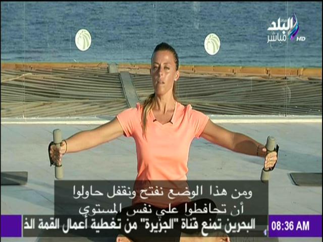 عرض برنامج "صباح البلد" المُذاع على فضائية "صدى البلد"، والذي يقدمه الإعلامي أحمد مجدي، والإعلامية رشا مجدي، صباح اليوم، الأربعاء، الفقرة الرياضية مع "فالنتينا"، من فندق "كليوباترا ريزورت" بشرم الشيخ، التي قدمت خلال فقرة اليوم، بعض التدريبات الرياضية لتقوية عضات الجسم باستخدام الأوزان.