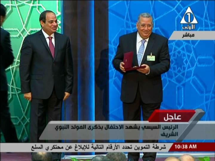سلم الرئيس عبدالفتاح السيسي، مجموعة من علماء المسلمين وسام العلوم والفنون من الطبقة الأولى باحتفالية وزارة الأوقاف بذكرى المولد النبوي الشريف، وذلك بقاعة مؤتمرات الأزهر بمدينة نصر بحضور المهندس شريف إسماعيل رئيس مجلس الوزراء، والدكتور أحمد الطيب شيخ الأزهر الشريف، والدكتور علي عبد العال رئيس مجلس النواب، والبابا تواضروس الثاني بابا الإسكندرية بطريرك الكرازة المرقسية، والدكتور شوقي علام مفتي الجمهورية، والدكتور محمد مختار جمعة وزير الأوقاف ، وسفراء الدول الإسلامية والعربية بالقاهرة وكبار رجال الدولة والأزهر والأوقاف وبعض أعضاء مجلس النواب.وجاء على رأس المكرمين الدكتور أسامة العبد رئيس اللجنة الدينية والأوقاف بمجلس النواب، رئيس جامعة الأزهر الأسبق، والدكتور إسماعيل الكندري مدير المكتب الكويتى للمشروعات الخيرية بالقاهرة، ومحمد عبد العزيز توبة مدير مديرية أوقاف أسوان السابق، وخالد بن علي آل خليفة وزير العدل والشئون الإسلامية والأوقاف بدولة البحرين، وأربعة من أساتذة جامعة الأزهر والعاملين بالأوقاف الذين أثروا الحياة الدينية.