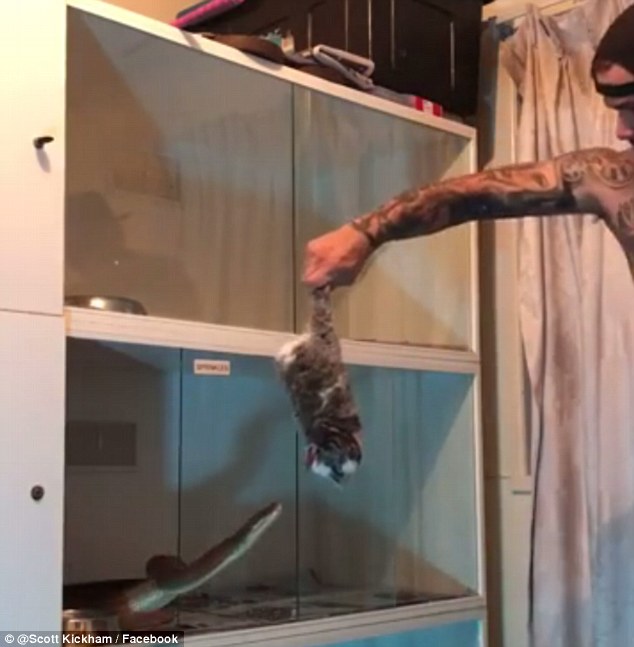وقال "كيكهام" إن ثعبانه يشعر بالجوع طوال الوقت، لكنه لا يطعمه سوى مرة كل شهر، مضيفا أن الثعبان شديد الضخامة، لذلك فهو يضطر إلى شراء أرانب مجمدة من متجر للحيوانات الأليفة لاطعامه.