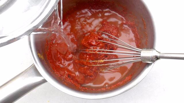 قلبي مزيج الطماطم ثم اضيفي الخل الى المزيج و قلبي.