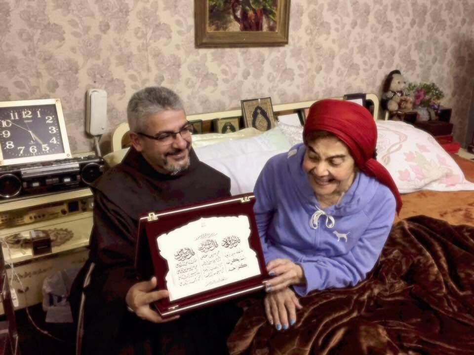 الأب بطرس دانيال يهدي ماجدة "آيات قرآنية" على فراش المرض.. صور