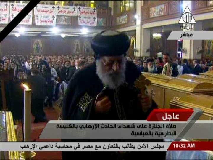 وقد وصلت قبل قليل بعض جثامين شهداء تفجيرات الكنيسة البطرسية بالعباسية إلى كنيسة العذراء والقديس أثناسيوس بمدينة نصر، وذلك استعدادا لصلاة الجنازة على أرواحهم.