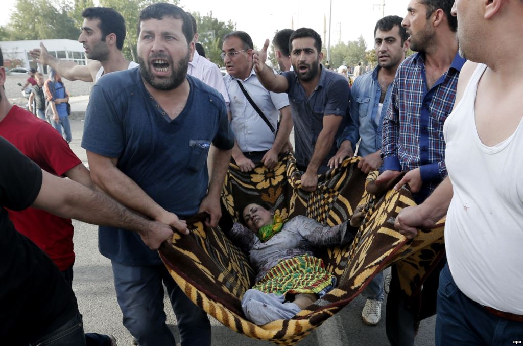 لقي خمسة أشخاص مصرعهم وأصيب 400 آخرون في هجوم شنّه تنظيم داعش الإرهابي أثناء لقاء جماهيري لحزب الشعوب الديمقراطي الكردي في مدينة ديار بكر قبل يومين من انطلاق الانتخابات البرلمانية في السابع من يونيه/ حزيران العام الماضي.
