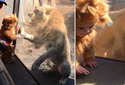 حيث واجه أسد بالغ كبير الطفل "اريه" البالغ من العمر 11 شهرًا، وظل يحدق فيه لفترة من خلف الفاصل الزجاجى فى احدى حدائق الحيوان بولاية "اتلانتا" الأمريكية.