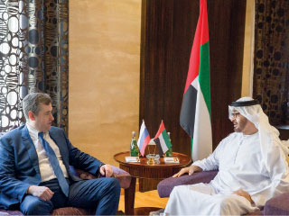 وبحث بن زايد مع المسئول العسكري الأمريكي علاقات التعاون والصداقة الثنائية بين الإمارات العربية المتحدة والولايات المتحدة الأمريكية وسبل تعزيزها وتطويرها بما يخدم المصالح المشتركة للبلدين الصديقين خاصة في مجالات التنسيق والتعاون الدفاعي والعسكري.