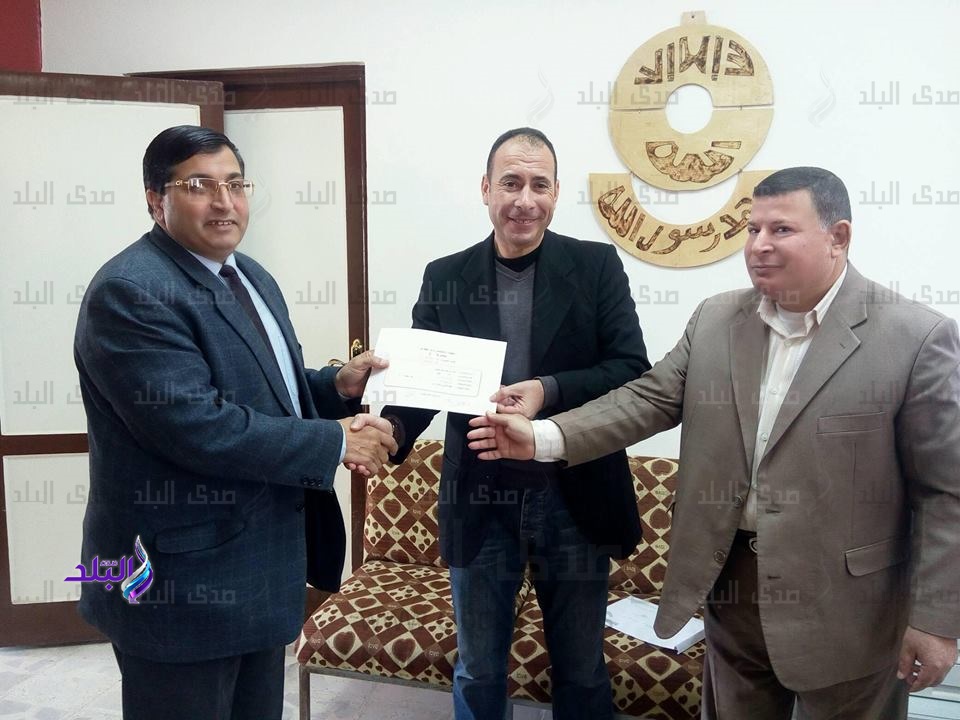 كرم محمد عقل وكيل وزارة التربية والتعليم بجنوب سيناء برفقته عبد الرازق عثمان مدير ادارة راس سدر التعليمية حازم ابراهيم المهدى موجه الصحافة المدرسية بإدارة رأس سدر التعليمية لتفوق مدارس راس سدر فى مسابقات الصحافة المدرسية على مستوى الجمهورية.