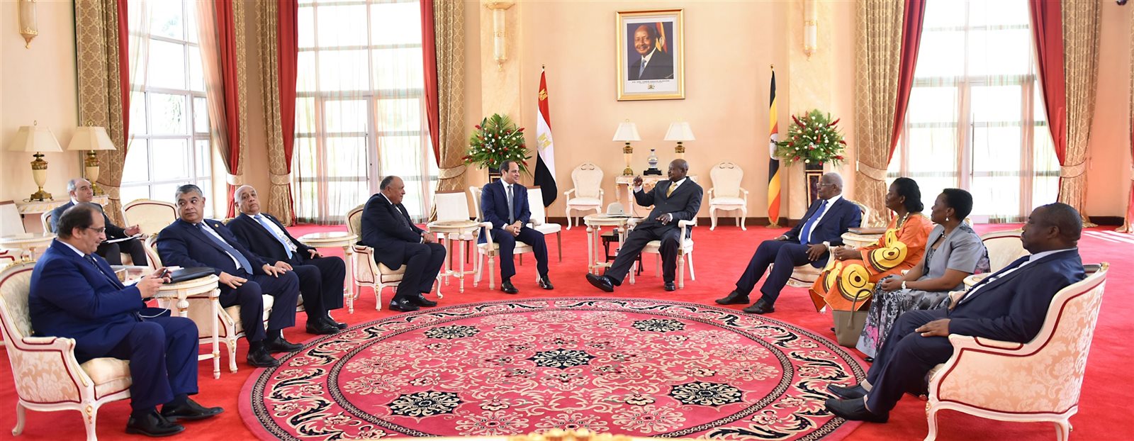 وقد صرح السفير علاء يوسف المتحدث الرسمي باِسم رئاسة الجمهورية بأن الرئيس عقد جلسة مباحثات مع الرئيس الأوغندي يوري موسيفيني، الذى استهلها بالترحيب بالرئيس، مشيرًا إلى أن زيارة الرئيس هي أول زيارة رسمية يقوم بها رئيس مصري إلى أوغندا. وأشاد الرئيس موسيفيني بالعلاقات التاريخية الممتدة التي تجمع بين البلدين منذ قرون، وبالدور الذي قامت به مصر فى دعم استقلال أوغندا، معربًا عن تطلعه لأن تمثل زيارة الرئيس إلى أوغندا نقطة انطلاق جديدة في العلاقات المتميزة التي تربط بين البلدين والعمل على تطويرها والارتقاء بها فى كل المجالات.