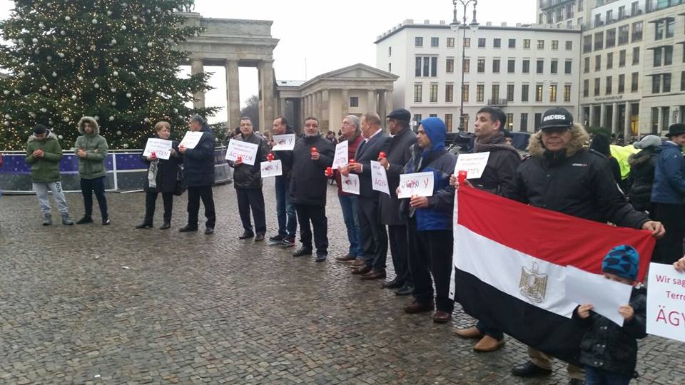 شارك الاتحاد العالمي لبيت العائلة المصرية المكون من 14 مؤسسة مصرية في دول "النمسا وسويسرا وألمانيا وفرنسا وتونس وإيطاليا وجنوب أفريقيا والمملكة العربية السعودية والإمارات العربية المتحدة وكندا وروسيا والكويت" في وقفة بالشموع مساء اليوم الأحد، أمام بوابة النصر في العاصمة الألمانية برلين، تنديدًا بالعمل الإرهابي الذي وقع يوم الأحد الماضي بالكنيسة البطرسية بالعباسية وراح ضحيته 29 شهيدًا وعشرات المصابين.
