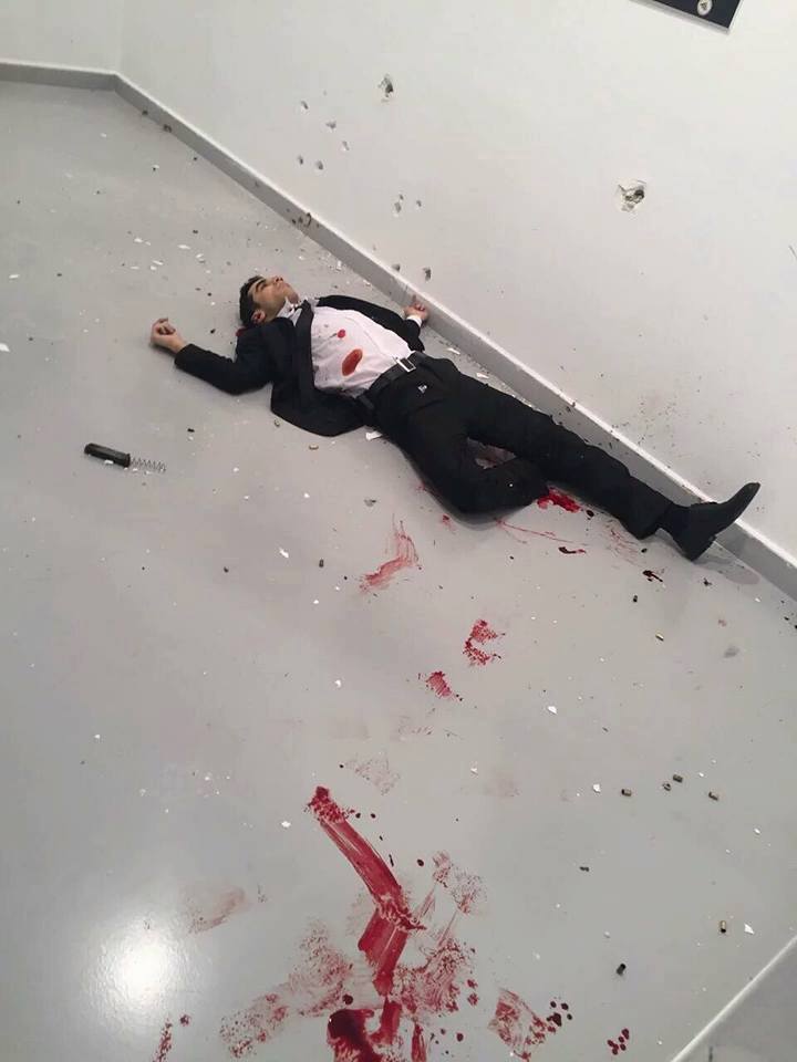 وكان السفير الروسي لدى تركيا، أندريه كارلوف، تعرض اليوم الاثنين، لهجوم مسلح، ما أسفر عن إصابته إصابة بليغة أدت إلى وفاته، وقال الشرطي التركي منفذ عملية الاغتيال بعد إطلاق النار على السفير: نحن الذين بايعوا محمدًا على الجهاد، وكان يصرخ: «لا تنسوا حلب، لا تنسوا سوريا»، كل من له يد في هذا الظلم سيدفع الحساب، لن أخرج من القاعة إلا ميتًا، ما لم تكن بلادنا في أمان فإنكم أنتم أيضًا لن تتذوقوه».