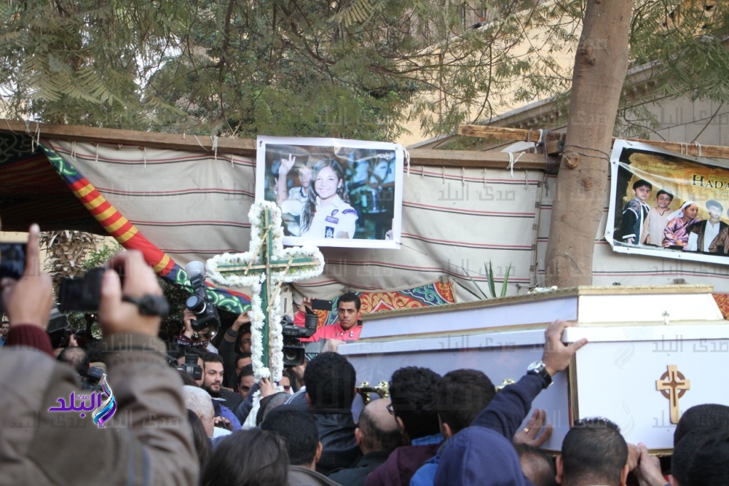 وصل منذ قليل جثمان الشهيدة ماجي مومن الى الكنيسة البطرسية للصلاة على روحها ، ودقت طبول الكشافة العزف الحزين اثناء دخولها.