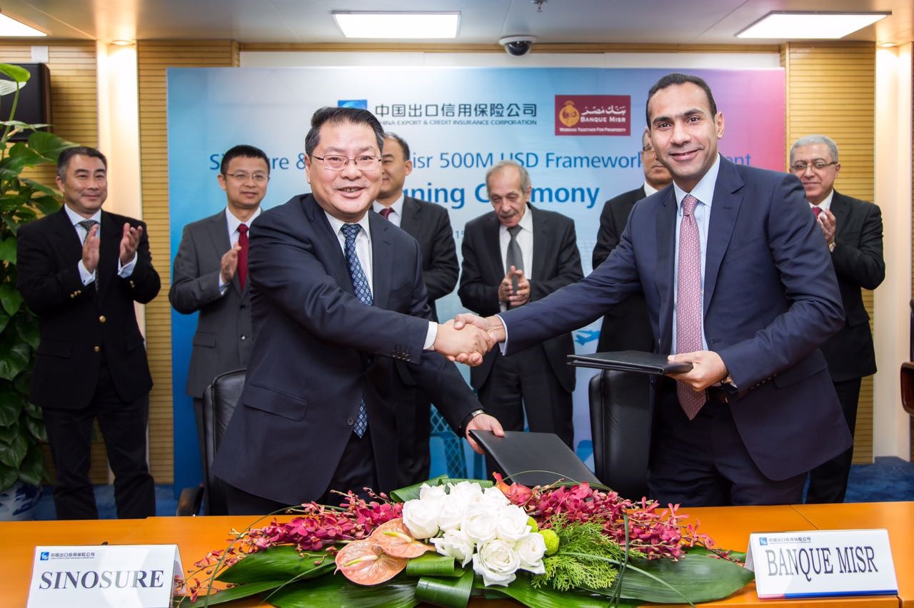 وكان عاكف المغربى - نائب رئيس مجلس إدارة بنك مصر قام بتوقيع إتفاق عمل اطارى FRAME WORK AGREEMENT مع مؤسسة ضمانة الصادرات الصينية ساينوشور ( SINOSURE) بمبلغ 500 مليون دولار.