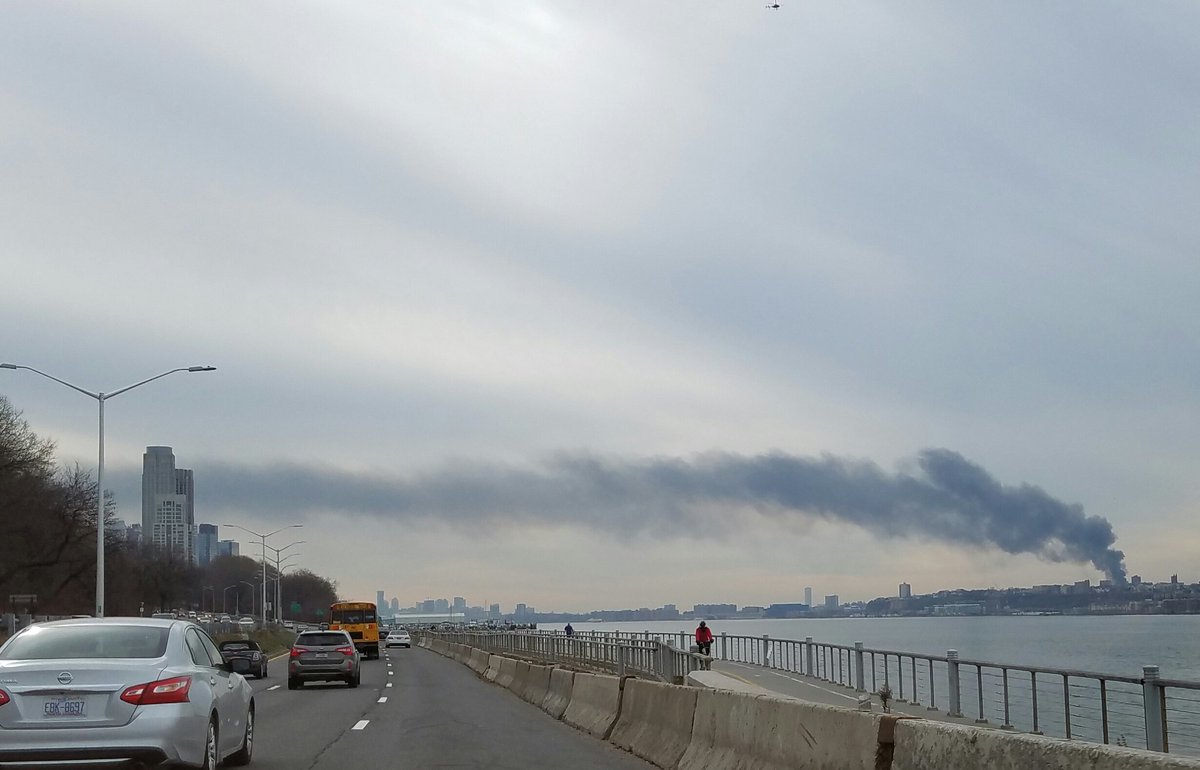 وعبَّرت سحب الدخان فوق نهر هادسون، ووصلت إلى مانهاتين، ولم ترد أخبار عن وجود إصابات، بينما يواصل رجال الإطفاء عملهم على إخماد الحريق.