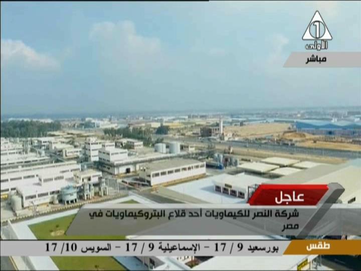 استعرض التليفزيون المصري لقطات مصورة بواسطة طائرة هليكوبتر توضح التوسعات الجديدة التى شهدتها شركة النصر للكيماويات الوسطية، التابعة لجهاز الخدمة الوطنية للقوات المسلحة بمنطقة أبو رواش بالجيزة، والتى يفتتحها الرئيس عبدالفتاح السيسي اليوم.