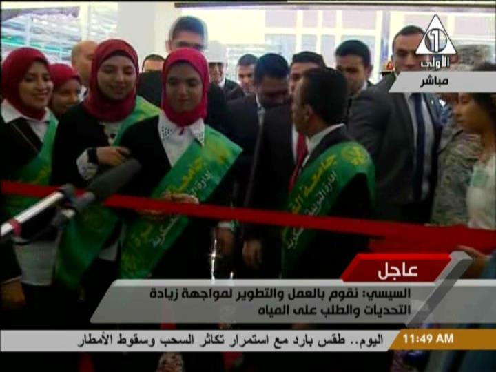 رحب الرئيس عبد الفتاح السيسي، بالفتيات المشاركات بافتتاح شركة النصر للكيمياويات الوسيطة، وطالبهن بقص الشريط تقديرا لدورهن.