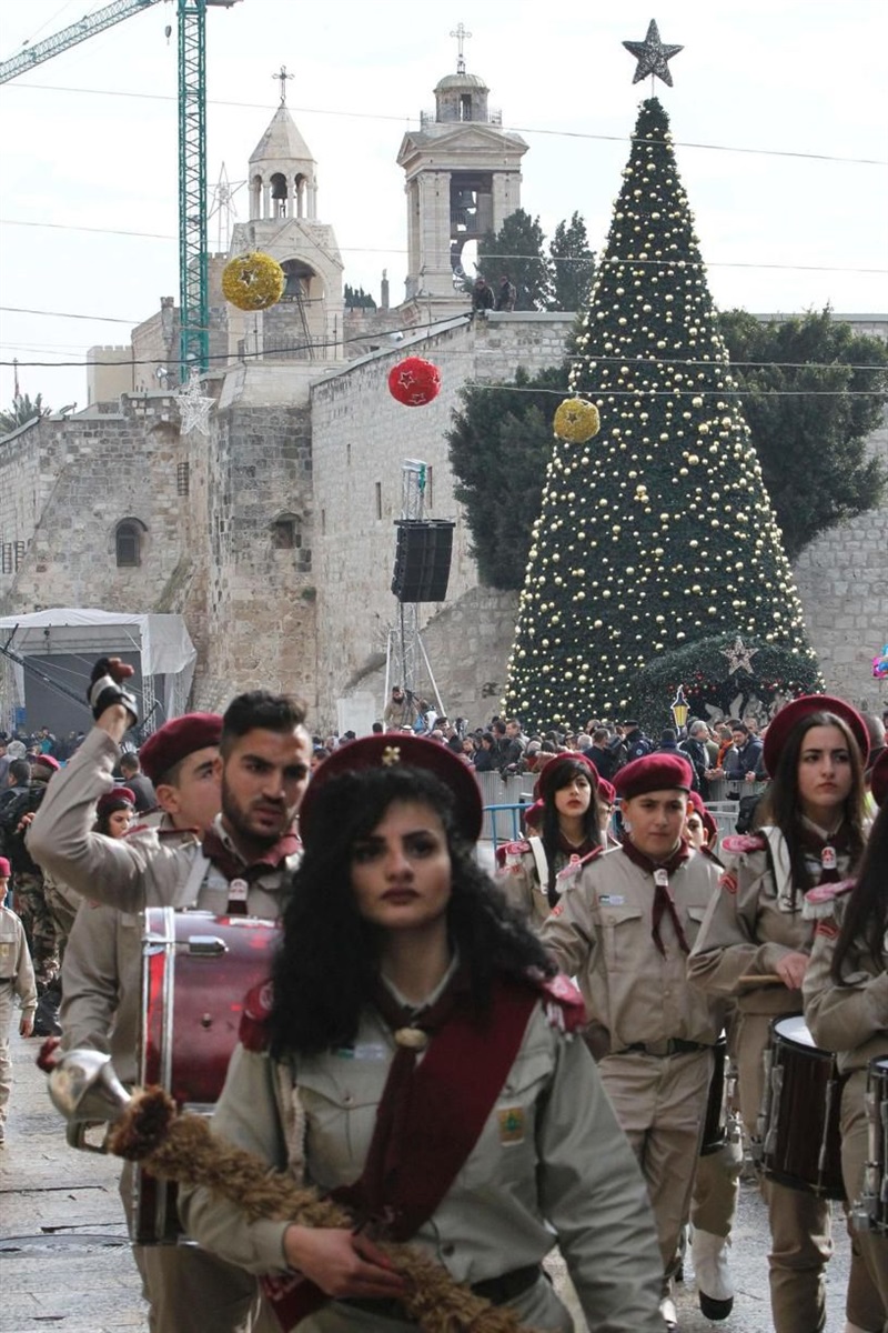 بالتنورات الاسكتلندية والمزامير، احتفلت مدينة بيت لحم الفلسطينية التي تتمتع بمكانة خاصة في العالم المسيحي، باحتفالات رأس السنة والكريسماس.