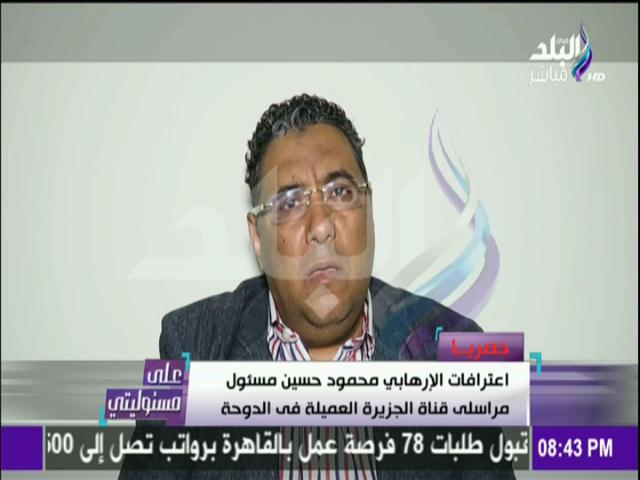 عرض الإعلامي أحمد موسى، مقطعا من التحقيقات مع الإرهابي محمود حسين مدير شبكة المراسلين لفضائية الجزيرة، لافتا الى أنه الآن تجري نيابة امن الدولة معه التحقيقات والتي فضح فيها العديد من مؤامرات دويلة قطر علي مصر.