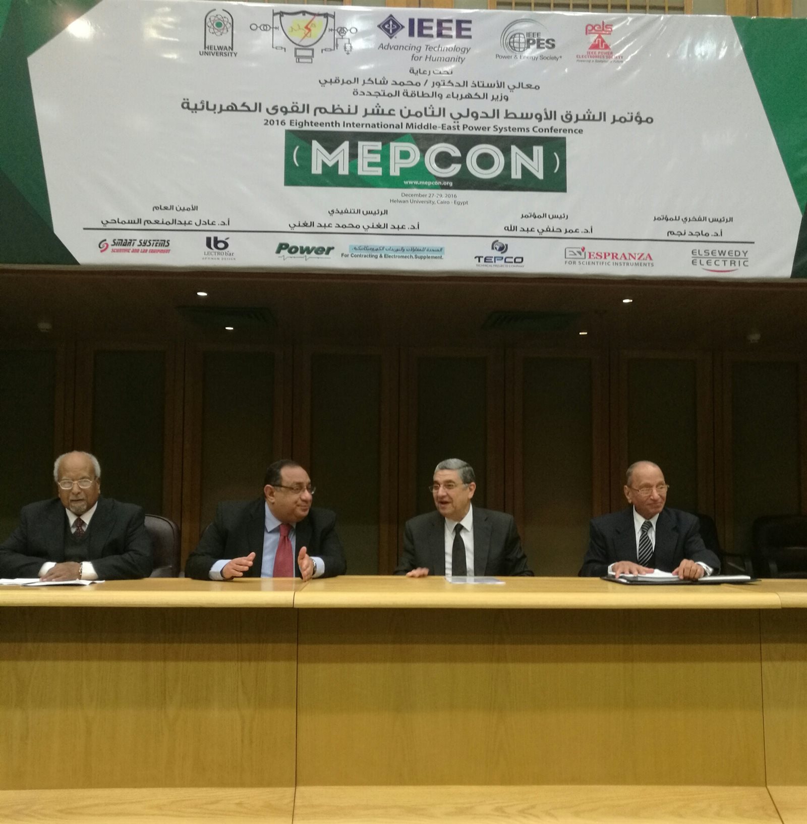 ألقى الدكتور محمد شاكر وزير الكهرباء والطاقة المتجددة صباح اليوم الثلاثاء كلمــة فى افتتاح مؤتمر الشرق الأوسط الدولى الثامن عشر لنظم القوى الكهربائية (MEPCON 2016) الذى تنظمه كلية الهندسة جامعة حلون.