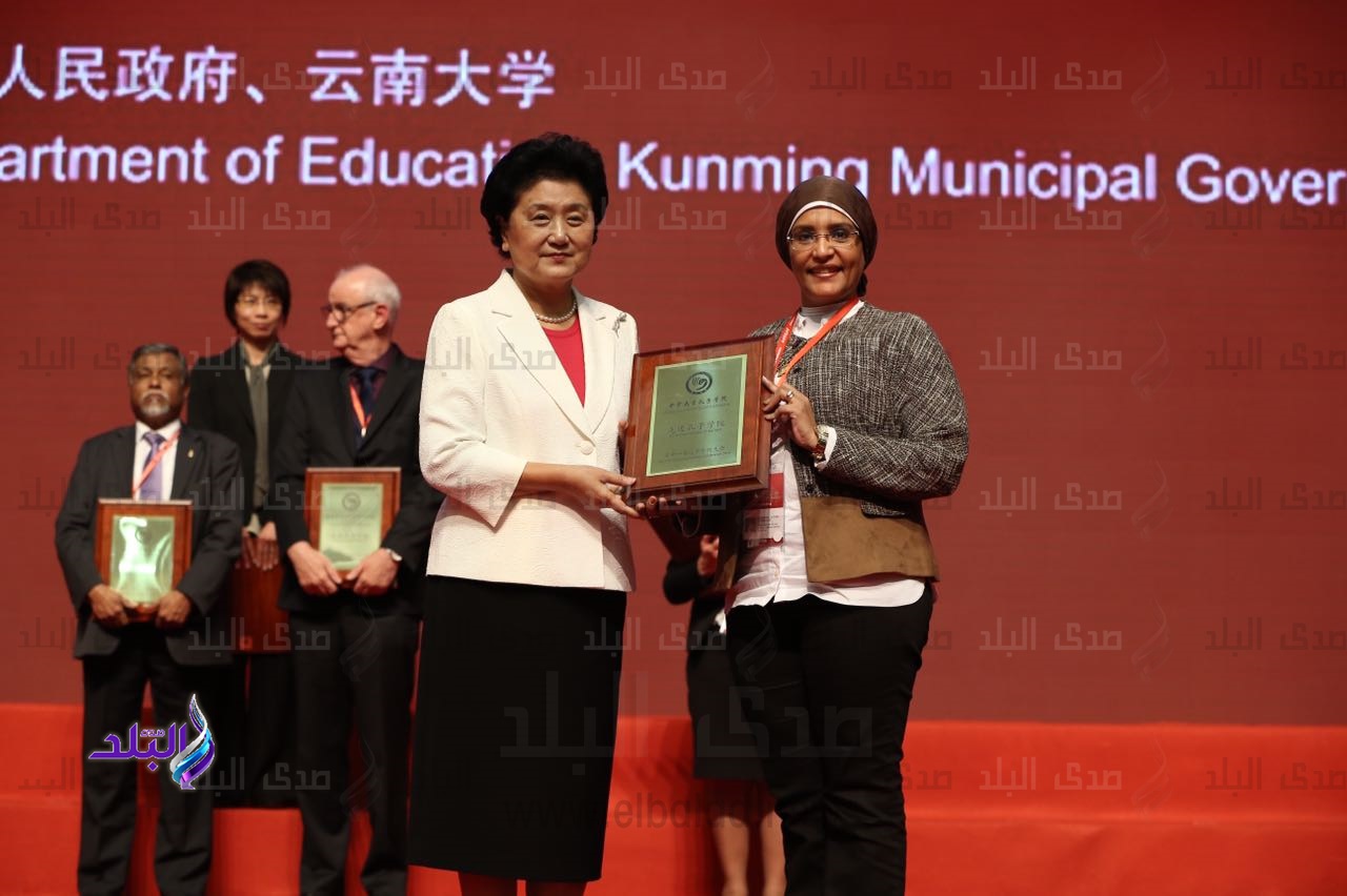 وتسلمت الجائزة الدكتورة رحاب محمود مديرة معهد كونفوشيوس بالجامعة، وذلك خلال انعقاد الدورة الحادية عشر للمؤتمر الدولي لمعاهد كونفوشيوس على مستوى العالم في مدينة "كونمينغ" بجنوب غربى الصين خلال ديسمبر الجاري، وسلمتها الجائزة السيدة ليو يان دونغ نائب رئيس مجلس الدولة الصيني وسط حضور 2200 مسئول وممثل من 140 دولة ومنطقة في الحدث السنوى الملقب "بدافوس قطاع التعليم".