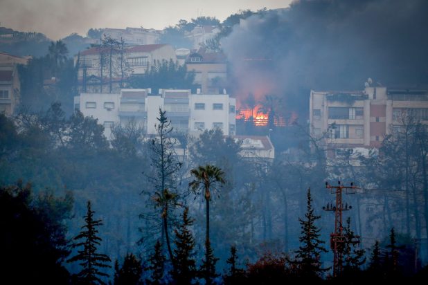 واندلعت حرائق هائلة في أنحاء إسرائيل، وأهمها في مدينتي حيفا والقدس، حيث ضربت النيران مؤخرًا مساحات شاسعة في إسرائيل ووصلت إلى أطراف الأماكن المأهولة، خاصة في مدينة حيفا، ما اضطر البلدية إلى تنظيم عملية إجلاء لـ60 ألف شخص من المدينة التي يبلغ عدد سكانها نحو 250 ألف نسمة.