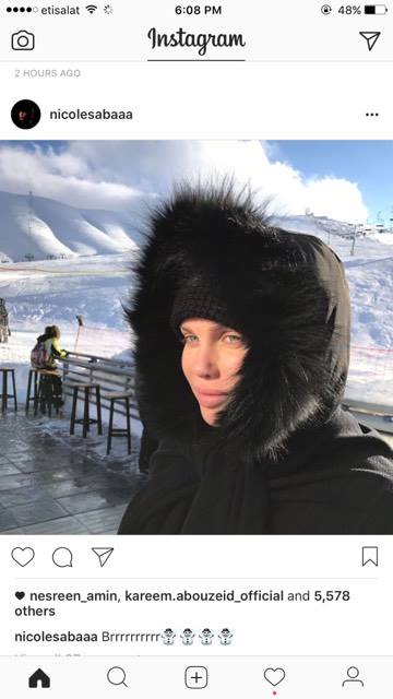 فيما نشرت الفنانة نيكول سابا من خلال صفحتها الشخصية على موقع التواصل الاجتماعي "إنستجرام" صورة وهي ترتدي ملابس شتوية أثناء تواجدها في لبنان والجو مليء بالأمطار والثلج.