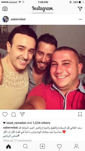 حرص المطرب صابر الرباعي على تهنئة الفنان سعد رمضان من خلال نشر صورة تجمعهما عبر صفحته الشخصية على موقع التواصل الاجتماعي "إنستجرام".
