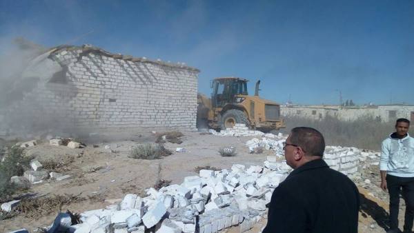 كما تم إزالة منزلين من الطوب البلوك وسقف خشب بمساحة 400م2، 2 مبني عبارة عن (حجرتين) من الطوب الأحمر بمساحة 200م2، مغسلة سيارات و2 كشك بمساحة 200م.