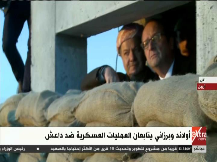 عرضت فضائية "أكسترا نيوز"، اليوم الاثنين، اللحظات الأولى لمتابعة الرئيس الفرنسي فرانسو أولاند ، ومسعود برزاني العمليات العسكرية ضد داعش.