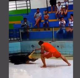 نشر موقع "لايف ليك" المختص بالفيديوهات مقطع فيديو يظهر تمساحا يأكل يد مدربه انتقامًا منه فى أحد العروض الحية أما الجمهور مباشرة فى مدينة "فوكيت" بتايلاند.