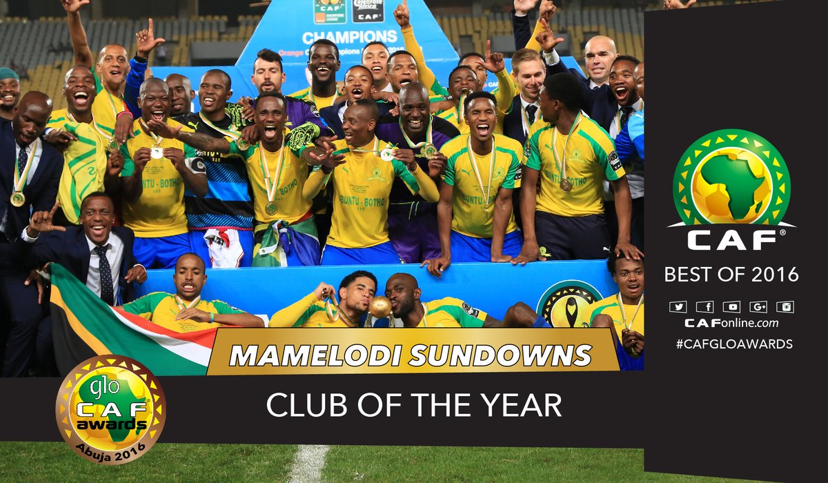 توج فريق صن داونز الجنوب إفريقى بطل دورى أبطال إفريقيا فى نسخته الماضية بعد فوزه على الزمالك فى النهائى بمجموع مباراتى الذهاب والإياب 3 / 1 بجائزة أفضل نادى فى القارة السمراء لعام 2016 خلال حفل جوائز الاتحاد الإفريقى للعبة المقام حاليًا فى مدينة أبوجا النيجيرية .