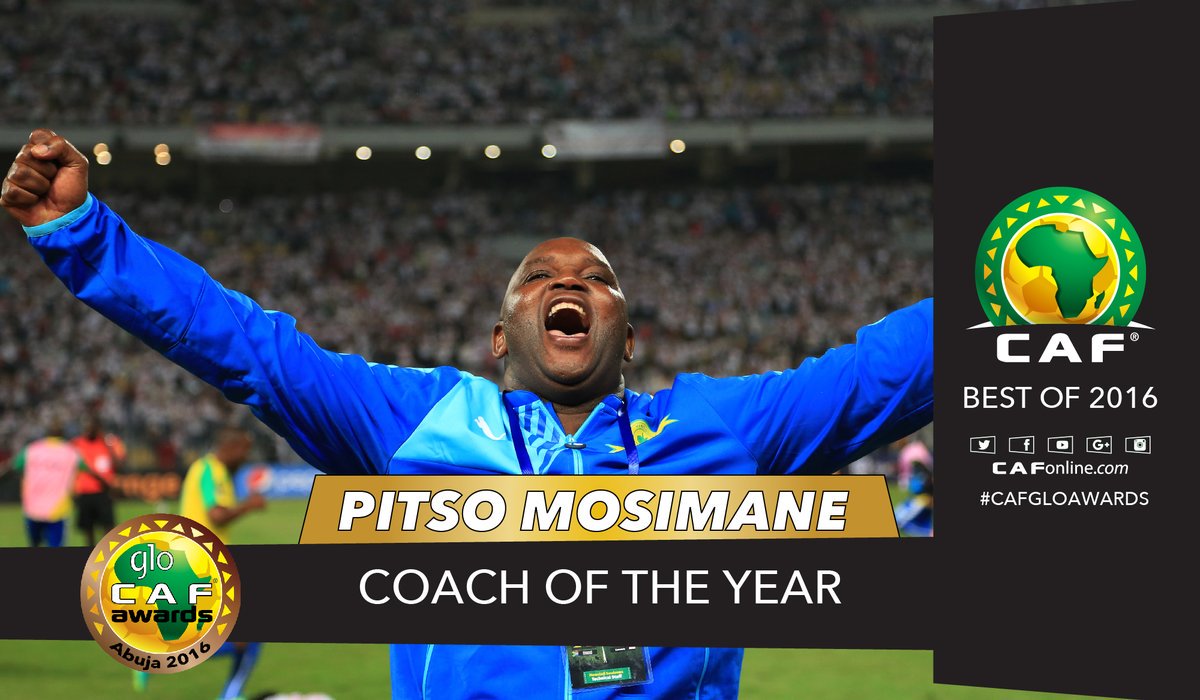 توج بيتسو موسيماني المدير الفنى لفريق صن دوانز الجنوب افريقى بجائزة أفضل مدرب في إفريقيا لعام 2016 خلال حفل جوائز " الكاف " المقام حاليًا فى مدينة ابوجا النيجيرية.
