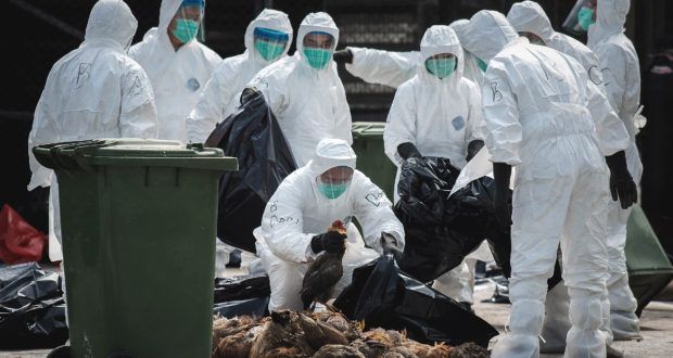 أعدم عمال يضعون أقنعة ويرتدون ملابس واقية آلافا من طيور البط بالغاز في جنوب غرب فرنسا اليوم الجمعة في محاولة لمنع تفشي سلالة (إتش5إن8) من فيروس إنفلونزا الطيور.