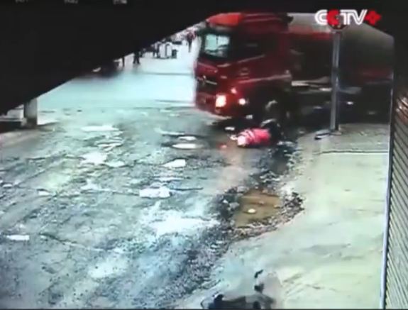 نشر موقع "لايف ليك" مقطع فيديو صادم، يظهر نجاة فتاتين من الموت المحقق أسفل شاحنة ضخمة فى محافظة "تشوزو" الصينية، بعد اصابتهما بجروح خطيرة جراء الحادث القوى الذى أطاح بهما.