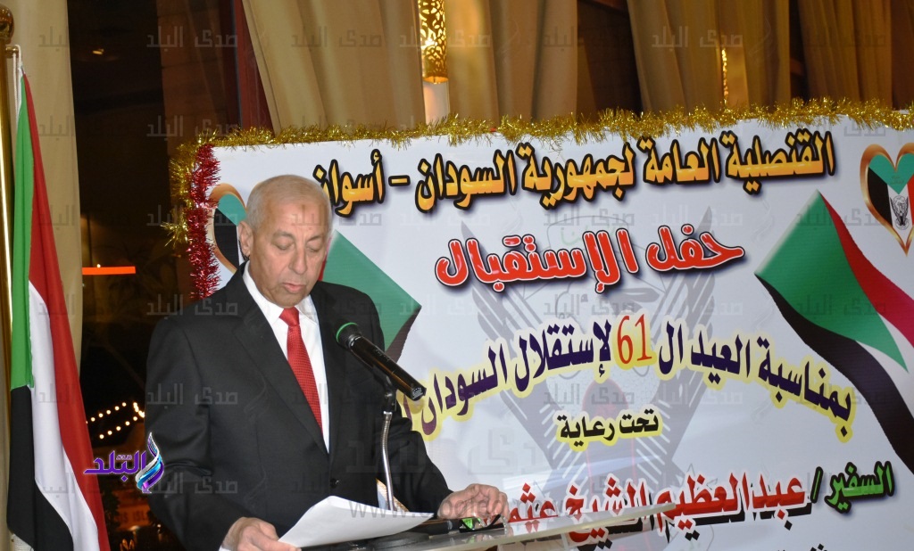 فى أجواء مليئة بالود والمحبة وفقرات من الفلكلور السوداني الأصيل، شهد اللواء مجدى حجازى محافظ أسوان، احتفال القنصلية العامة للسودان بالعيد الـ61 لاستقلال السودان الشقيق بحضور السفير عبد العظيم الشيخ عثمان القنصل العام لجمهورية السودان، واللواء مجدى موسى مدير أمن أسوان، والدكتور محمد عبد القادر القائم بأعمال رئيس جامعة أسوان، بجانب لفيف من القيادات الأمنية والتنفيذية والدينية والشعبية بالمحافظة علاوة على عدد كبير من أعضاء القنصلية وأبناء الجالية السودانية.