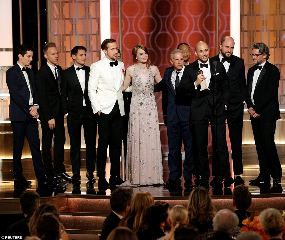 وجائزة افضل اغنية "City Of Stars"، جائزة افضل ممثلة للنجمة العالمية إيما ستون، جائزة افضل ممثل للنجم رايان جوسلينج وايضًا جائزة افضل فيلم موسيقي كوميدي.