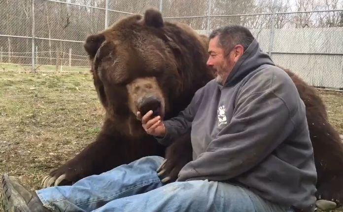 نشر موقع "لايف ليك" المختص بالفيديوهات مقطع فيديو طريف، يظهر دب ضخم يدعي "كودياك" يبلغ من العمر 23 عامًا، وهو يحتضن صاحبه تعبيرًا عن حبه له.