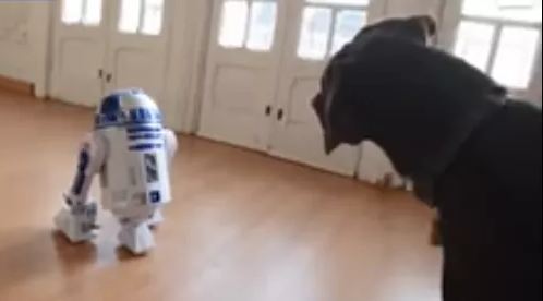 وظل الكلب ينبح عاليًا تعبيرًا عن غضبه من تطفل الروبوت عليه، والتفسير المنطقي لفزع الكلب هو رؤيته للروبوت لأول مرة، فتكون لديه حاجز نفسي.