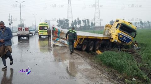 انقلاب سيارة نقل في كفر الشيخ بسبب سوء الأحوال الجوية.. صور