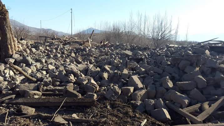 وتبين الصور أن القصف أدى إلى تدمير المنزلين بالكامل، حيث أكد شهود عيان أن "القصف أثار الذعر بين سكان القرية".