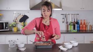 - ضعي الخليط في الصينيه، وادخليه الفرن لمدة ٤٥ دقيقة، ثم ضيفي على الصينيه الخليط الموجود في الثلاجة.