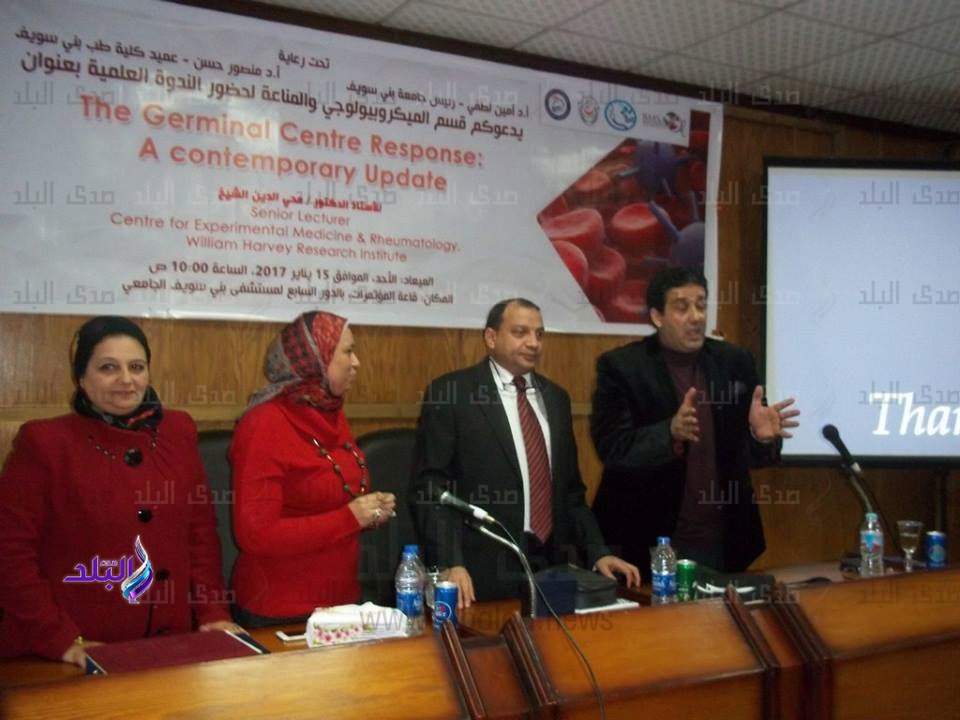 نظمت كلية الطب قسم الميكروبيولوجي والمناعة الطبية بجامعة بني سويف برعاية الدكتور أمين لطفي , ندوة بعنوان (The Germinal centre Response تحت إشراف الدكتور منصور حسن عميد الكلية وبحضور الدكتور محيي الدين الشيخ وأطباء قسم الميروبيولوجي والمناعة الطبية بالكلية.