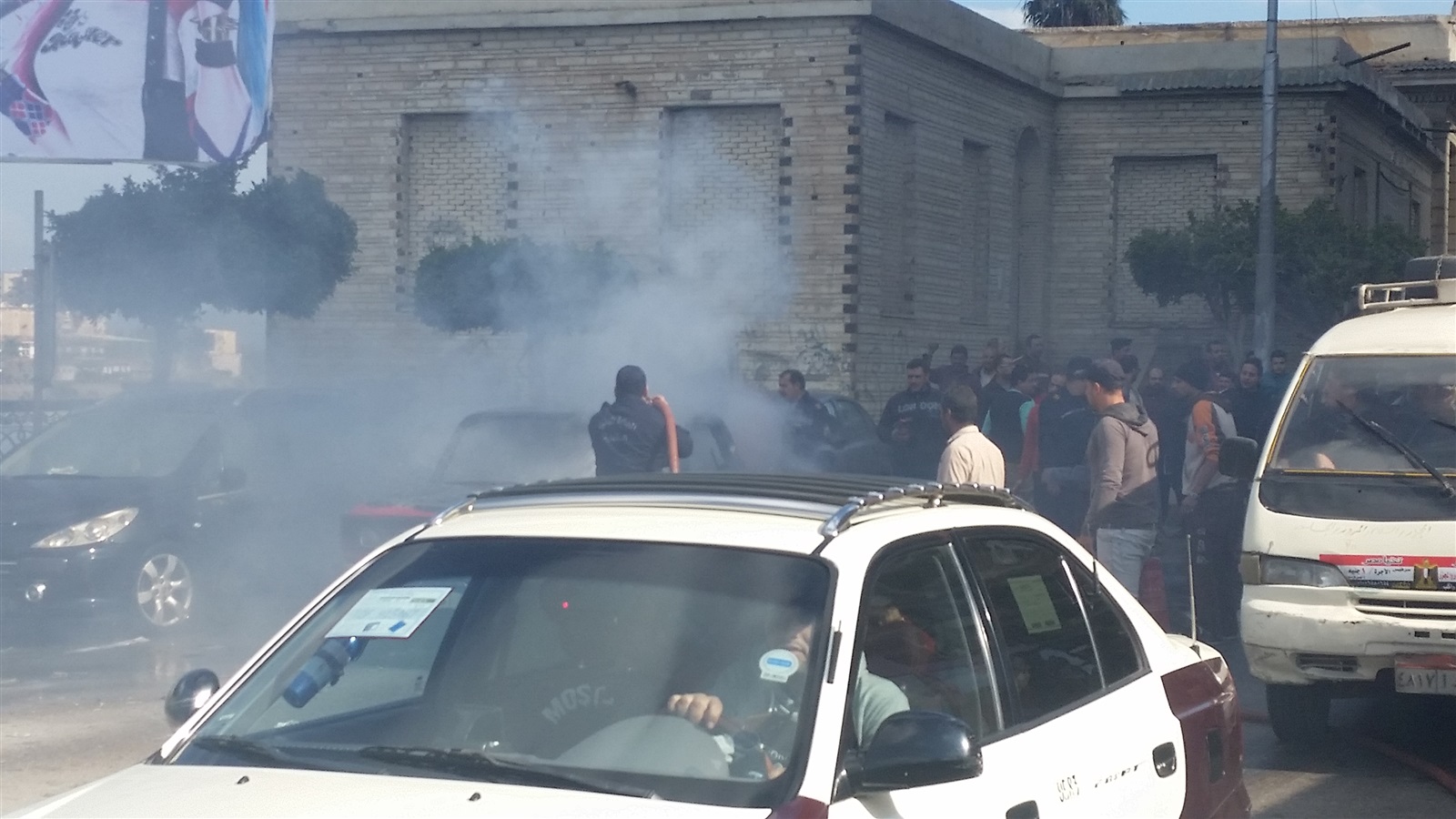 حريق هائل بإحدى السيارات بجوار مقر الحزب الوطني القديم بالدقهلية.. صور