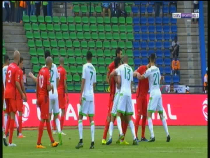 فمع الدقيقة الخامسة نفذ ياسين براهيمي ركلة حرة مباشرة بتسديدة رائعة من فوق الحائط أنقذها الحارس التونسي المثلوثي ببراعة، بعدها بدقيقة واحدة تألق المثلوثي من جديد وأخرج رأسية ميندي التي كادت أن تسكن الشباك لولا تدخل الحارس في الوقت المناسب .