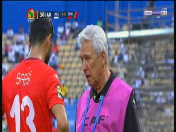 وبمرور الوقت هدأ إيقاع اللقاء نسبيًا وقلت الهجمات على كلا المرميين وسط انحصار للكرة في وسط الملعب وتألق لمدافعى تونس والجزائر .