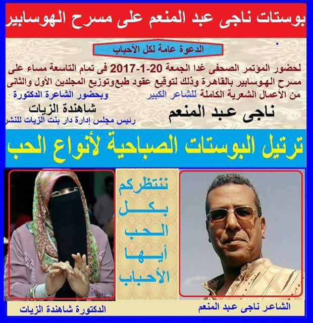 تعقد دار نشر بنت الزيات في السابعة مساء غدا الجمعة، مؤتمر صحفي لتوقيع عقود طبع وتوزيع المجلدين الأول والثاني، من الأعمال الشعرية الكاملة للشاعر ناجي عبد المنعم، وذلك بمسرح الهوسابير برمسيس، وبحضور رئيس مجلس إدارة بنت الزيات، شاهنده الزيات.