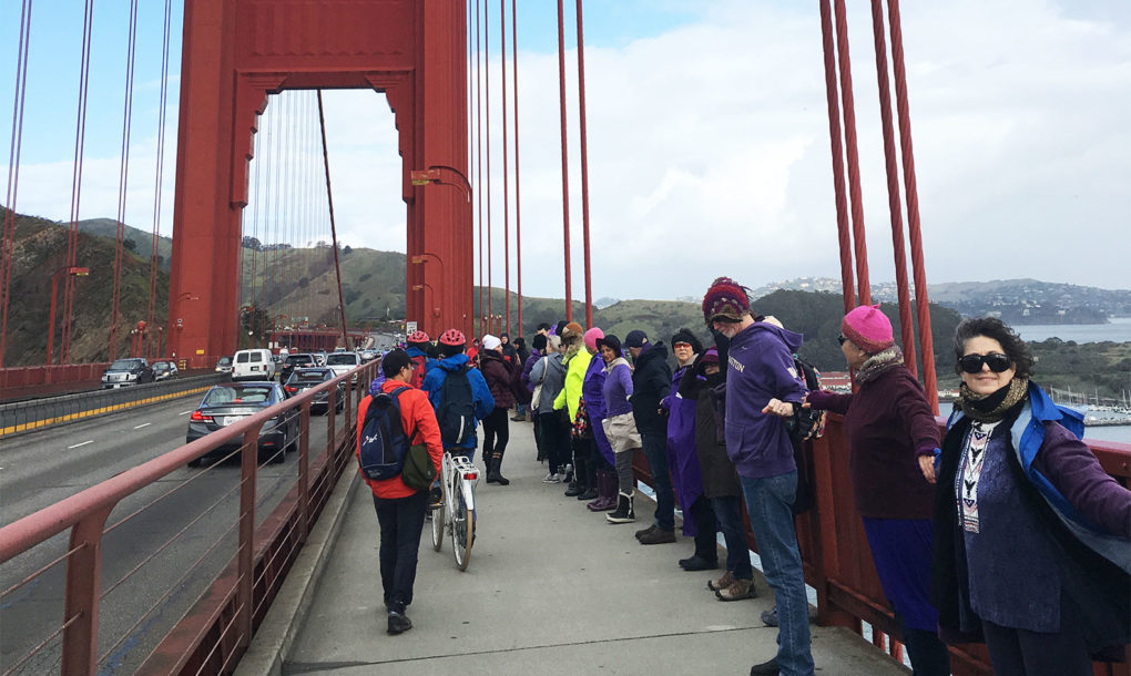 احتل متظاهرون معارضون للرئيس الامريكى دونالد ترامب في مدينة سان فرانسيسكو الممشى على جانبي جسر "جولدن جيت" في محاولة لتكوين سلسلة بشرية، لكى لا يتسبب ذلك فى تعطل حركة المرور على الجسر الذي يربط بين سان فرانسيسكو ومدينة سوساليتو.