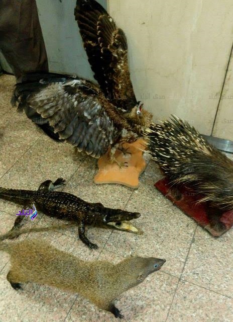 ضبطت سلطات مطار القاهرة اليوم السبت راكبا خليجيا حاول تهريب 4 حيوانات محنطة محظورة طبقا لقوانين الحياة البرية داخل حقائبه لدى سفره إلى الكويت وتم مصادرة المضبوطات والسماح للراكب بالسفر.