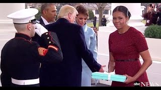 أحضرت ميلانيا ترامب هدية بصندوق لميشيل أوباما في حيرة، بعد أن عكفت على البحث عن مكان تضع فيه الهدية أو شخص يتسلمها منها.